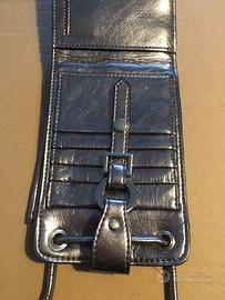 Zara vintage borsellino in tessuto argentato e imbottito con lunga tracolla sottile, chiusura a clip, portaspiccioli, spazi per carte di credito e tasca esterna. Ottime condizioni, cm 11x16.