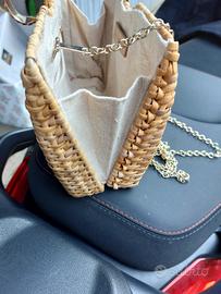 Zara borsetta in paglia rigida con travollina in catena, chiusura a clip,