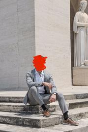 La persona in foto è alta 1,83m e indossa normalmente magliette e giacche di taglia L o XL e pantaloni di taglia M o L.