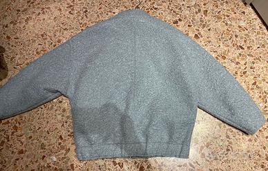 Giubbotto bomber oversize Zara in tessuto bouclé grigio melange (effetto peloso morbido), 100% poliestere.