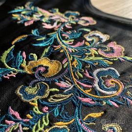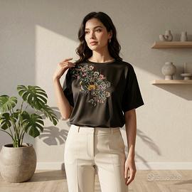 ✨ T-shirt Zara Woman Basic a pannelli con ricamo floreale multicolore frontale. 📏 Taglia L (lunghezza 65 cm, ascella-ascella 55 cm, spalle 52 cm). 🎨 Nera con ricamo in toni blu, verde, rosa, giallo e oro. 🧵 Corpo in cotone, maniche satinate fluide a contrasto. ✅ Usata, leggero pilling sul cotone non visibile a distanza. 🔍 Maglia Zara ricamata con maniche satinate, look sartoriale unico. 💬 Fai un’offerta o scrivimi per info! 🚚 Spedizione veloce o ritiro a mano a Burago di Molgora 📍 #zara #zarawoman #tshirtzara #ricamofloreale #magliericamata #donnazara #abbigliamentodonna #secondhand