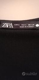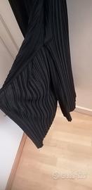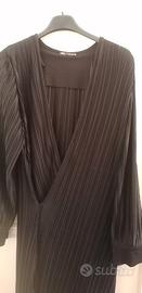 Vestito lungo nero Zara, gonna plissettata, spacco laterale, scollo a V.