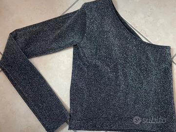 Crop top mono spalla con glitter taglia XS/S