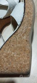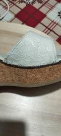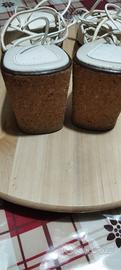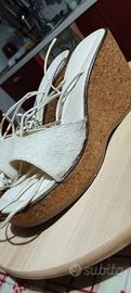 zatteroni con tacco in sughero e fascie rivestite in pizzo n.40 marca Giuliana tacco cm.9.5 zeppa cm.3