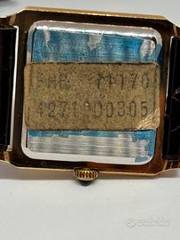 ZENITH Vintage 27.1900.305 – FULL NOS – Pellicole e Tag – Corredo Completo 26x31mm Tank-Carre’ Dettagli dell'esemplare: * Stato: Orologio intonso, con pellicole protettive e bollino originale ancora adesi al fondello. * Corredo: Set completo di scatola originale, garanzia dell'epoca in bianco (mai compilata) e tag (cartellino) originale con referenza. * Cassa: Elegante forma rettangolare placcata oro, misure 26 mm x 31 mm. * Movimento: Meccanico a carica manuale, calibro Zenith 30.5, perfettamente conservato. * Base Tecnica: È basato sul calibro Omega 625, frutto della collaborazione tra i marchi del gruppo in quel periodo. * Frequenza: Oscilla a 21.600 alternanze l'ora (vph). * Rubini: 17, Corona con Cabochon di zaffiro blu * Quadrante: Gilded dial con raffinata lavorazione verticale e indici applicati. * Cinturino: Originale Zenith in pelle con fibbia logata dell'epoca. Un pezzo "capsula del tempo", ideale per chi cerca la perfezione assoluta o un investimento sicuro nel vintage Zenith. 475€ compresa spedizione Posso consegnare personalmente nella mia zona Brescia/cremona NON USO TUTTO SUBITO Telefonare al 3921267322