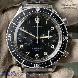 Orologio Zenith originale in ogni sua parte, fondo di magazzino praticamente mai usato, revisionato in ottime condizioni, segni di usura assenti o appena visibili, scatola originale Zenith dell’epoca, garanzia/dichiarazione di vendita del nostro negozio valida per 12 mesi.