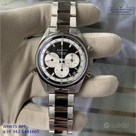Orologio Zenith originale in ogni sua parte, mai usato in ottime condizioni come nuovo, segni di usura assenti o appena visibili, full set (scatola, accessori vari, garanzia card ufficiale Zenith valida per 2 anni), garanzia/dichiarazione di vendita nostro negozio valida per 12 mesi.