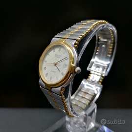 Orologio vintage Zenith modello clipper al quarzo, quadrante bianco con numeri romani, bracciale coevo acciaio e oro, cassa sottile misura donna 24mm escluso corona, segni del tempo sul vetro, originale
