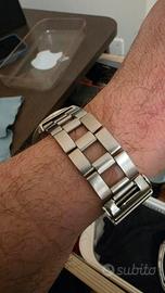 Come da oggetto vendo raro Zenith Defy versione A3643. Fine anni 60 (1969) Orologio tenuto maniacalmente, revisionato e corredato di bracciale serie limitata Zenith Gay Frères. 38mm di diametro. Orologio noto bel mondo collezionistico come "Cassaforte del tempo" Vetro privo di segni e cura dei dettagli maniacale. Calibro di manifattura 2552PC di alto livello. Nasceva con 300m di profondità. 2700€