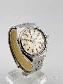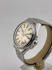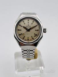 Zenith Defy anni '70 definito "La cassaforte del tempo" per le sue doti di resistenza all'acqua: fino a 300 m di profondità, un record per l'epoca. Cassa in acciaio da 38mm, corona a vite marcata Zenith, cinturino in acciaio generico d'epoca e movimento a carica automatica cal. 2562PC a 28.800 alternanze/h di manifattura Zenith.