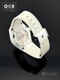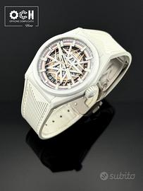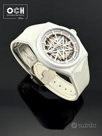 Vendo Zenith Defy “Fusalp” Referenza 49.9002.670-1/02.R796 Originale DIMENSIONI CASSA-41mm MATERIALE CASSA-Ceramica MATERIALE BRACCIALE/CINTURINO-Gomma con deployante in acciaio COLORE QUADRANTE-Bianco e oro (scheletrato) MATERIALE GHIERA-Ceramica MATERIALE VETRO-Zaffiro MATERIALE FONDELLO-Zaffiro MOVIMENTO-Automatico SCATOLA-Zenith GARANZIA-Zenith NOTE-Edizione limitata 100 pezzi mondo Tel