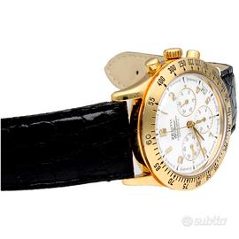 Un segnatempo dal fascino classico e raffinato, completo di scatola e garanzia originale datata 2001, ideale sia per l’appassionato del marchio sia per chi desidera un cronografo automatico in oro con forte contenuto tecnico e storico.