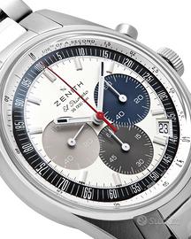 Zenith El Primero Chronomaster Original 38 mm ref 03.03200.3600/69.m3200; Peso: 134 gr Misura: 16/22 cm; Anno: 2023; Corredo: Scatola e Garanzia del rivenditore; Referenza: 03.03200.3600/69.m3200; Carica: Automatico; Calibro: 3600; Rubini: 35; Colore quadrante: Bianco, Nero, Blu, Grigio; Corona: Acciaio; Diametro cassa: 38mm; Ghiera: Acciaio Materiale cassa: Acciaio; Materiale cinturino: Acciaio; Vetro: Zaffiro Cod: 15-c
