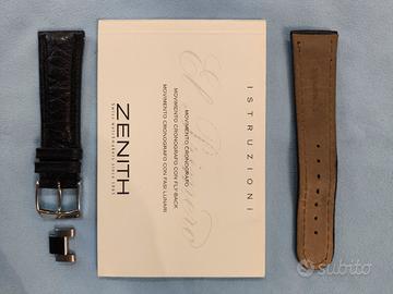 Zenith El Primero De Luca Anno 1990 in condizioni eccellenti, pari al nuovo, perfettamente funzionante e revisionato. Completo di Cinturino Originale in Pelle marcato Zenith, libretto di istruzioni, e maglia del bracciale in acciaio supplementare.