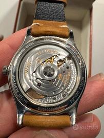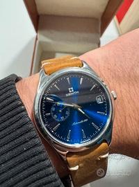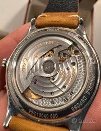 Vendo orologio Zenith Elite del 2001. L'orologio presenta le seguenti caratteristiche: Movimento automatico Calibro 680 Quadrante blu con finitura a raggio di sole Quadrante dei piccoli secondi Vetro zaffiro Cassa in acciaio inossidabile Cinturino in pelle marrone Referenza del produttore: 90/01.0040.680 Viene fornito con la scatola originale Zenith ed è in condizioni eccellenti, praticamente come nuovo. L'orologio funziona perfettamente ed è un vero classico per gli appassionati.