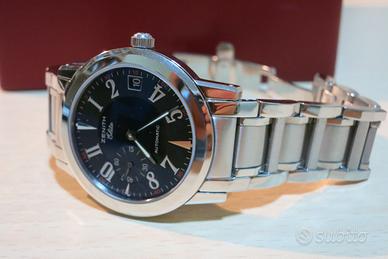 Vendo splendido Zenith Port Royal V, completo di scatola originale e ricevuta di acquisto. L'orologio, dotato di calibro di manifattura Zenith Elite 680 a 28.800 alternanze e con una riserva di carica di circa 55h, è stato completamente revisionato presso un noto artigiano di Roma nel 2023 (possiedo ricevuta con dettaglio delle operazioni effettuate) e poi tenuto sempre in cassetta. Dotato del suo bracciale originale, l'orologio ha un diametro di soli 37cm ed uno spessore di appena 9mm, elegante e precisissimo dress watch. Calibro Elite 680 che non ha bisogno di presentazioni: spessore di soli 3,28 mm, complicazione della data bidirezionale, universalmente conosciuto per precisione ed affidabilità. È stato anche utilizzato anche in alcuni modelli Panerai Radiomir tra il 2000 e il 2003 Il bracciale conserva tutte le maglie originali. Spedizione a cura e a carico dell'acquirente. Non accetto alcun tipo di permuta e considero il prezzo leggermente trattabile per chi desideri lo scambio a mano (possibile in Puglia e in Basilicata). Offro e cerco la massima serietà.