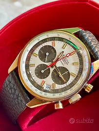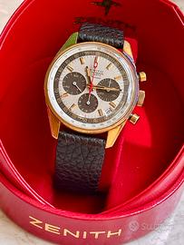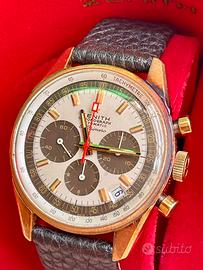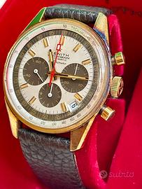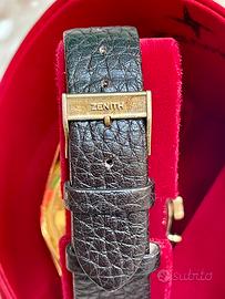 Bellissimo Zenith G581 Mai lucidato con ossido sulla cassa scatola rara Zenith dell epoca Quadrante con contatori virato al marrone Fibbia originale