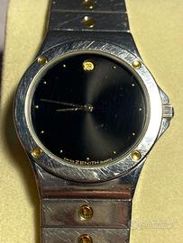 In vendita un esemplare raro di Zenith Museum Pacific, icona di minimalismo svizzero a cavallo tra gli anni '80 e '90. Un segnatempo che si distingue per il celebre quadrante "Museum" nero profondo, privo di indici, incorniciato da una cassa in acciaio con raffinati dettagli dorati. Il design con bracciale integrato e la finitura bicolore lo rendono un pezzo di estrema classe, perfetto per chi cerca un orologio vintage di prestigio ma dalle linee ancora attualissime. Punti di Forza: Revisione Completa: L'orologio è stato revisionato il 07/03/2025, garantendo precisione millimetrica e perfetta efficienza. Estetica: Condizioni ottime, con un contrasto acciaio/oro che esalta il nero del quadrante. Corredo: Incluso nel prezzo, l'orologio viene fornito con una scatola originale Zenith (custodia autentica del brand, anche se appartenente a una serie diversa), ideale per la conservazione o per un regalo di valore. Specifiche Tecniche: Marca: Zenith Modello: Museum Pacific Referenza: 59.0020.615 Movimento: Quarzo svizzero alta precisione Dimensioni: 31 mm (esclusa corona) Cassa e Bracciale: Acciaio inox con finiture Gold Vetro: Minerale 💎 Orologio autentico, perfettamente funzionante e di grande impatto. 📍 Consegna a mano: Disponibile su Prato, Firenze e zone limitrofe ( Per la spedizione contattatemi ). 📩 Contattami per ulteriori foto o per visionare l'orologio dal vivo. #Zenith #ZenithMuseum #OrologioVintage #LuxuryWatch #SwissMade #OrologioDaCollezione #ZenithPacific #VintageStyle #Firenze #Prato #OrologioRevisionato