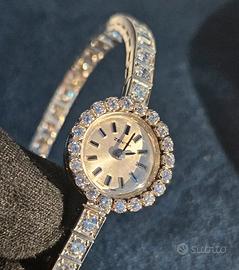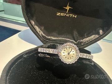 Orologio da donna Zenith, oro bianco 18 carati con diamanti taglio brillanti, incastonati sull’intero bracciale e intorno al quadrante.