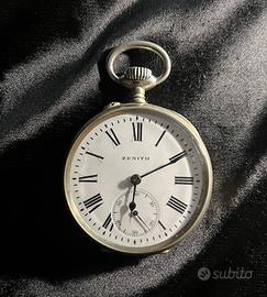 Vendo questo bellissimo Zenith da tasca modello grand prix paris 1900. Cassa In acciaio, perfettamente conservato, vetrino intatto, quadrante a numeri romani intatto, tutto originale. Perfettamente funzionante revisionato e totalmente lubrificato da orologiaio professionista. Il numero di serie e quello del movimento sono visibili in foto. Per qualsiasi informazione, non esitate a contattarmi.
