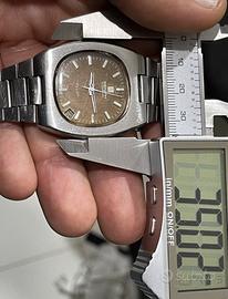Orologio automatico anni 70, funzionante e ben tenuto. Corona e chiusura logati, bracciale completo per polsi importanti, cassa 35x40 mm circa. Prezzo non trattabile perché piu basso del web.