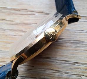 Vendo stupendo Zenith Stellina calibro 106 con numero di movimento 4442894, un autentico pezzo di storia dell'orologeria svizzera. La cassa (numero 636824) misura circa 32 mm ed è completamente d'oro 18k (così come riportato sul fondello, vedi foto). Il quadrante, in lieve e stupenda patina, presenta lunetta con i piccoli secondi a ore 6, con un raffinato motivo a cerchi concentrici (guilloché) nel sotto-quadrante. Gli indici sono applicati e alternano numeri arabi (3, 6, 9, 12) a indici a punta di freccia. La Corona è originale e presenta la tipica stella Zenith a cinque punte, coerente con il periodo della metà degli anni '50. La fibia è originale Zenith ed è anch'essa in oro. L'orologio è perfettamente funzionante ed è stato revisionato (certificabile) nel 2014, così come mostrato in foto.