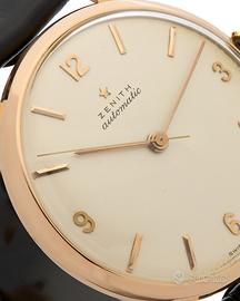 Titolo: Zenith Stellina Automatic Bumper 133 oro 18kt 35mm; Peso: 34.77; Misura: da 15 a 19cm; Materiale: Oro rosa; Anno: 1960 (circa); Corredo: Garanzia e Scatola del rivenditore; Referenza: 894791; Carica: Automatico; Calibro: 133.8 “martelletto”; Rubini: 20; Colore quadrante: Bianco; Corona: Oro rosa; Diametro cassa: 35,5mm; Ghiera: Oro rosa Materiale cassa: Oro rosa; Materiale cinturino: Pelle; Vetro: Plexiglass Cod: 8158-a