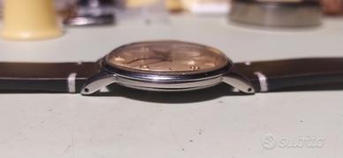 bellissimo Zenith stellina cassa 36mm anni 50 corona originale molto rara con la Z nella stella quadrante originale champagne cin splendida patina del tempo indici e numeri arabi alternati e sfere a gladio movimento meccanico a carica manuale di manifattura calibro 126 robusto ed affidabile perfettamente marciante e revisionato, orologio autentico e coevo in ogni sua componente, in condizioni ottime