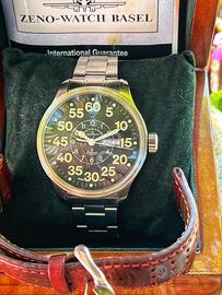 Orologio da uomo Zeno Watch based Pilot Orologio in stile puramente militare creato per i piloti dell’aereonautica Tutto in acciaio con un calibro eta Completo della sua scatola,bracciale acciaio,cinturino in cuoio traforato traspirante e garanzia originale Orologio Perfettamente funzionante Gradisco la vendita di persona che penso sia la cosa migliore sempre viceversa posso anche spedire previo accordi Grazie