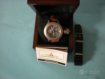 Bellissimo e raro orologio Zeno Watch Basel serie limitata non più in produzione, carica manuale di dimensioni 42 mm e spessore importante , replica orologio militare con scatola e garanzia italiana, doppio cinturino gomma e cuoio. Perfettamente funzionante , come nuovo per collezionisti . Non faccio permute