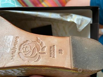 Vendo zeppe con plateau Maliparmi tg 38, in cuoio, color cuoio, usate 1 volta (non si camminare cin zeppa e plateau).