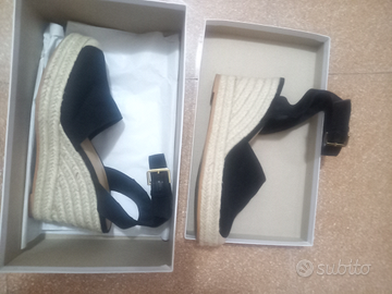 Marca H&M, per inutilizzo vendo queste zeppe nere numero 39 con cinturino regolabile alla caviglia, medio-alte 9 cm e plateau 2cm, indossate solo una volta, calzata giusta.