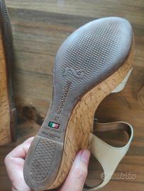 Calzata comoda (è stata aggiunta anche una soletta per renderla ancora più morbida. Usate ma in ottime condizioni come si vede su esterno, zeppa e suola, la parte più rovinata è internamente nella zona in cui appoggia la punta del piede (come in foto).