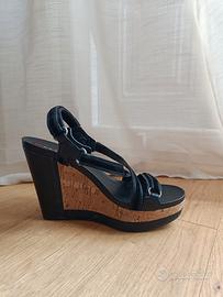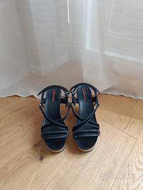 Sandali Prada modello con zeppa in sughero e cinturini neri. N 37 IT Altezza tacco: 12 cm Altezza plateau: 3 cm Ottimo stato!