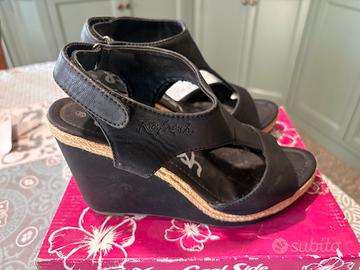 Zeppe Refresh in pelle scamosciata nera e corda