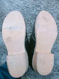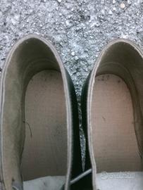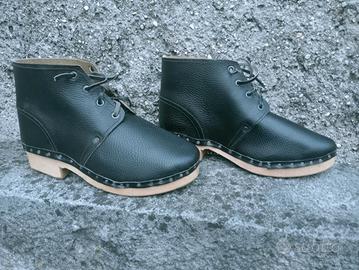 zoccoli da minatore , fatti da un artigiano della zona anni fa, sono in legno pelle e lacci in cuoio ,mai stati usati ma tenuti per collezione ,riproducono gli zoccoli del minatore degli anni 1900 adatti a collezionisti e per rappresentazioni storiche, disponibile per altre informazioni.
