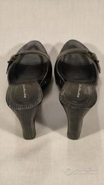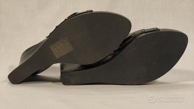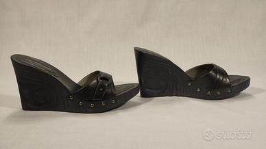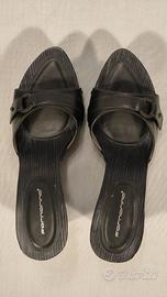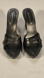Fornarina, zoccoli legno in pelle nera, zeppa nera cm. 11, plateau cm. 2. Misura 41. Nuova. Scatola non originale.