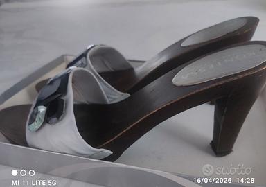 zoccoli in legno e pelle colore grigio