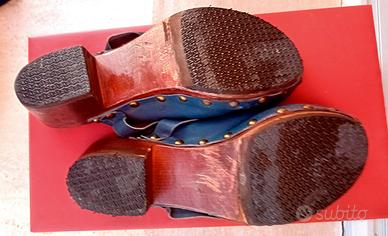 zoccoli legno pelle senza più etichetta.fondo in gomma rinnovato