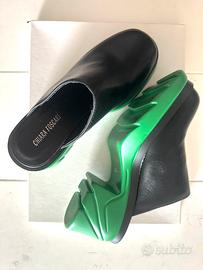 Soccoli da donna nr 39. Colore nero con piattaforma verde. Altezza tacco 8cm