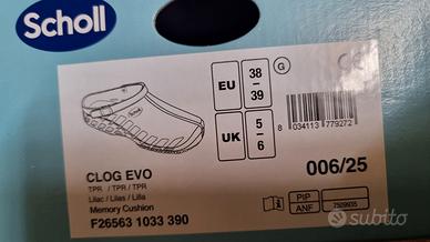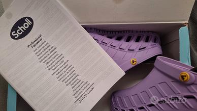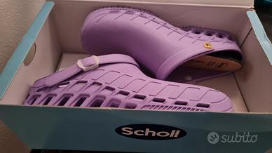 Vendo per taglia errata zoccoli Scholl Clog Evo di colore lilla taglia 38/39 come nuove, indossate due volte, con scatola originale. Prezzo di listino € 59,00, svendo a 35,00 € non trattabili.