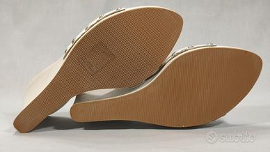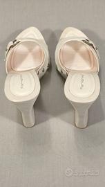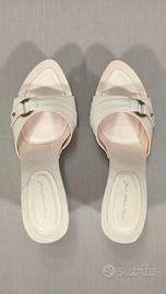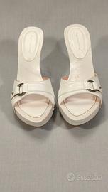 Fornarina, zoccoli legno in pelle bianca, zeppa bianca cm. 11, plateau cm. 2. Misura 40 Nuova. Scatola non originale.