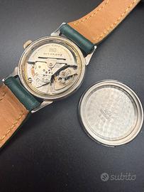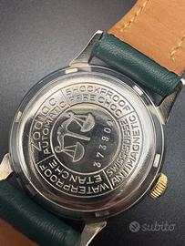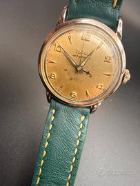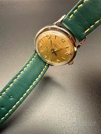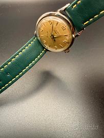 Vendo Zodiac Autographic originale d’epoca, splendido esempio di orologeria svizzera anni ’50/’60, elegante e ricercato. 🔹 Dettagli •Marca: Zodiac •Modello: Autographic •Movimento: Automatico svizzero •Calibro: Zodiac 1484 – 17 rubini •Cassa: Acciaio inox •Fondello: A vite, inciso Waterproof – Shockproof – Antimagnetic – Swiss •Quadrante: Originale color champagne con bella patina naturale •Indici: Applicati dorati •Vetro: Plexiglass •Cinturino: Pelle (non originale) 🔹 Condizioni •Orologio originale, non restaurato •Movimento visibile in foto, completo e funzionante •Quadrante mai ristampato, con normali segni del tempo •Cassa in buone condizioni generali Calibro di’ manifattura 1484 con riserva di carica 36 ore raffigurato anche sul quadrante Per ricerca zenith longines omega tissot