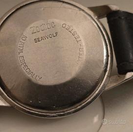 Zodiac sea wolf, modello vintage anni 50, ref 699. E’ un modello che ha fatto la storia, oltre ad essere considerato il primo Diver nella storia dell’orologeria, cassa 10 Atm, è stato l’orologio militare usato dai soldati americani nella guerra del Vietnam. Cassa da 35 mm, esclusa corona,waterprof 10 Atm, movimento automatico revisionato, quadrante, ghiera e vetro originali. Per maggiiri info e ulteriori foto non esitate a contatrarmi.