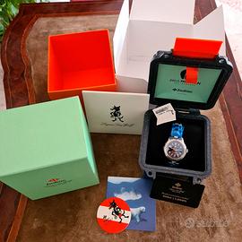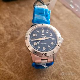 NO SCAMBI Sono un collezionista di orologi sia Moderni che Vintage. Vendo questo stupendo e raro Zodiac Super Sea Wolf 691 zo0001 in Edizione Limitata (400 esemplari) con movimento meccanico a carica manuale, nuovo Full Set in garanzia. Eccezionale Zodiac Super Sea Wolf Ref. 691 ZO0001, reissue del leggendario "Unsigned Seawolf" del 1953 (antenato del Sea Wolf), edizione moderna limitata e fedelissima all'originale. Completamente nuovo, mai indossato, full set originale: scatola, manuali, in garanzia (data di acquisto 6/03/2026 - Ricevuta inclusa). Condizione NOS con pellicole protettive. Se conoscete Zodiac, conoscete il Sea Wolf. È il loro orologio subacqueo emblematico, un pilastro della loro collezione e uno degli orologi "skin diver" più famosi sin dal 1953. Ma non è nato dal nulla. Il Sea Wolf è stato preceduto da un orologio subacqueo ref. 691 senza firma (o meglio, senza nome) con lunetta girevole in acciaio, cassa in acciaio e numeri arabi sui numeri pari. Questo nuovo Zodiac ref. ZO0001 modello 691 è una fedele riedizione a carica manuale del ref. 691 del 1953. La cassa in acciaio inossidabile misura 36 mm di diametro (proprio come quella originale) e 12 mm di spessore, con un'impermeabilità fino a 200 metri. L'orologio monta un movimento a carica manuale STP 1-21M con 40 ore di riserva di carica. I quadranti presentano i numeri arabi in corrispondenza delle ore pari, con Super-LumiNova su lancette e quadrante. Marca: Zodiac Modello: Zodiac x Craft + Tailored Super Sea Wolf ref. 691 Numero di referenza: ZO0001 Diametro: 36 mm Spessore: 12 mm Materiale della cassa: Acciaio inossidabile Colore del quadrante: Nero (ZO0001) Indici: Applicati LumiNova su lancette, numeri e indici Impermeabilità: 200 m Cinturino/Bracciale: Acciaio inossidabile a tre maglie con rivetti Movimento Calibro: STP 1-21M Funzioni: Ore, minuti, secondi centrali Riserva di carica: 40 ore Carica: Manuale Edizione limitata: 400 esemplari numerati