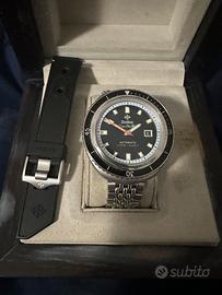 Vendo orologio zodiak super sea wolf con scatola e cinturino originale in gomma piu cinturino d’epoca in acciaio a maglie elastiche originale zodiak (leggermente lascco sulle anse )