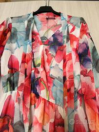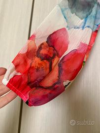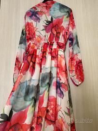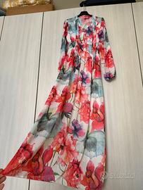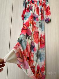 Zuiki-vestito lungo estivo, floreale con rose rosse e azzurre, con elastico in vita, maniche lunghe e larghe, girocollo con fiocco. Scrive M ma veste piu piccolo. Misura italiana 40/42 Misura europea:36/38 #vestitozuikiestivofloreale3638 #zuikivestitolungofiorirossi3638