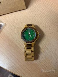 Propongo vendita raffinato orologio ZZERO della collezione Greentime, realizzato in legno naturale con elegante quadrante verde, dal design distintivo e ricercato.