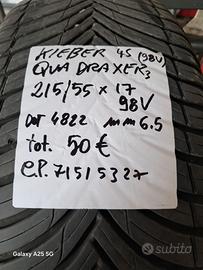 Marca e disegno pneumatici KLEBER QUADRAXER 3. Misura, indice di carico, codice di velocità e marcature: 215/55 R 17 98 V MS. Anno Produzione 2022 (4822). 6.5 millimetri residui di battistrada.