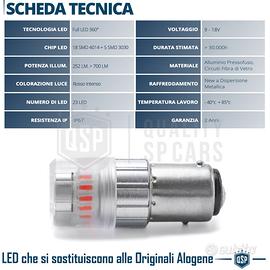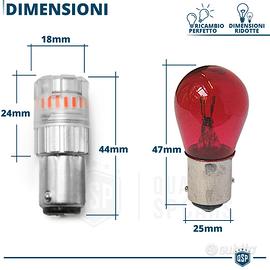 1 Lampadina Led P21/5W - BAY15D Rossa Professionale | Luce Potente e "Diffusa" 360° - CANbus NO Errori - Plug & Play | 700LM 23 LED SMD Prodotto a Qualità, Durata e Potenza Garantita - Illuminazione Potente | 30 LUMEN ogni LED = 700LM - Look Rinnovato | LED Rosso - No Errori | CANbus - Ricambio Perfetto | Plug & Play UTILIZZI SUGGERITI: - Luci di Posizione Posteriori + Luci Freni Stop (LAMPADINA A DOPPIA FUNZIONE) COMPATIBILITÀ: - Vetture Con Lampada Alogena P21/5W - BAY15D - 1157 - Montaggio Plug & Play INFO: Lampadina LED per Coversione da Alogena di Serie P21/5W - BAY15D a Luce LED Bianca Intensa, Senza Errori e Modifiche. - LUCE DIFFUSA: La Copertura Led Opaca, con trasparenza all' 85%, offre una Luce Trasmessa e Diffusa, creando un effetto di Luce Elegante e Piacevole alla vista all' Interno del Faro, fornendo anche una protezione Anti-Abbaglio. SCHEDA TECNICA: - Tipo: P21/5W - BAY15D, a Baionetta - Colore: Rosso - Materiale: Alluminio + Circuiti in Fibra di vetro - N° Led: 23 LED con Cover Opaca (18 Laterali + 5 Frontali) - Tipo Led: 18 LED SMD 4014 + 5 LED SMD 3030 - Potenza: 700 LM + 252 LM | 10W - Voltaggio: 9-18V - Canbus: SI - Lunghezza: 44mm - Diametro Ø: 18mm - Tecnologia: FULL LED - Resistenza a polveri ed Acqua: IP67 - Peso: 11Gr (ognuna) - Temperatura di Lavoro: -40C° +85C° - Applicazione: Ricambio Perfetto - Confezione o Scatolo: Originale - Condizioni: Nuovo PER INFO CONTATTARE AL 3927091031 ANCHE LINEA WhatsApp OPPURE VIA E-MAIL: rtautoitalia2018@libero.it CONSEGNA: - Effettuiamo Spedizioni 24-48H in TUTTA ITALIA - Ritiro in Sede con Possibilità di Visionare il Prodotto - Vendiamo solo Articoli Nuovi PAGAMENTI: - PayPal - Con Carta - Bonifico Bancario - Alla Consegna con Contrassegno